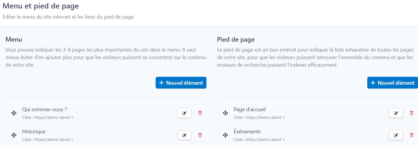 9 - Répétez l'opération pour chaque menu et pied de page que vous créerez.