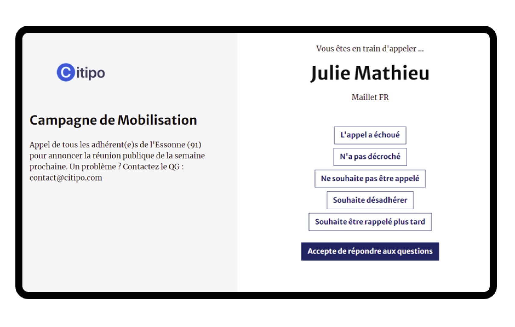 Le module de campagne d'appels de Citipo a été conçu pour vous accompagner tout au long de l'organisation et de la progression d'une telle action.