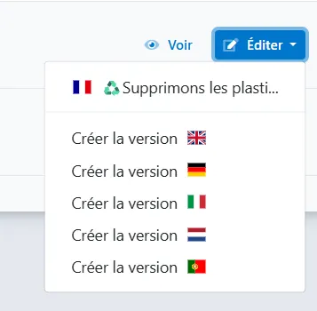 Afin d'atteindre un maximum de signataires, vous avez la possibilité de créer plusieurs versions de la pétition, en plusieurs langues. Chaque version est éditable séparément. Les mentions obligatoires est les blocs de données personnelles seront directement traduits.