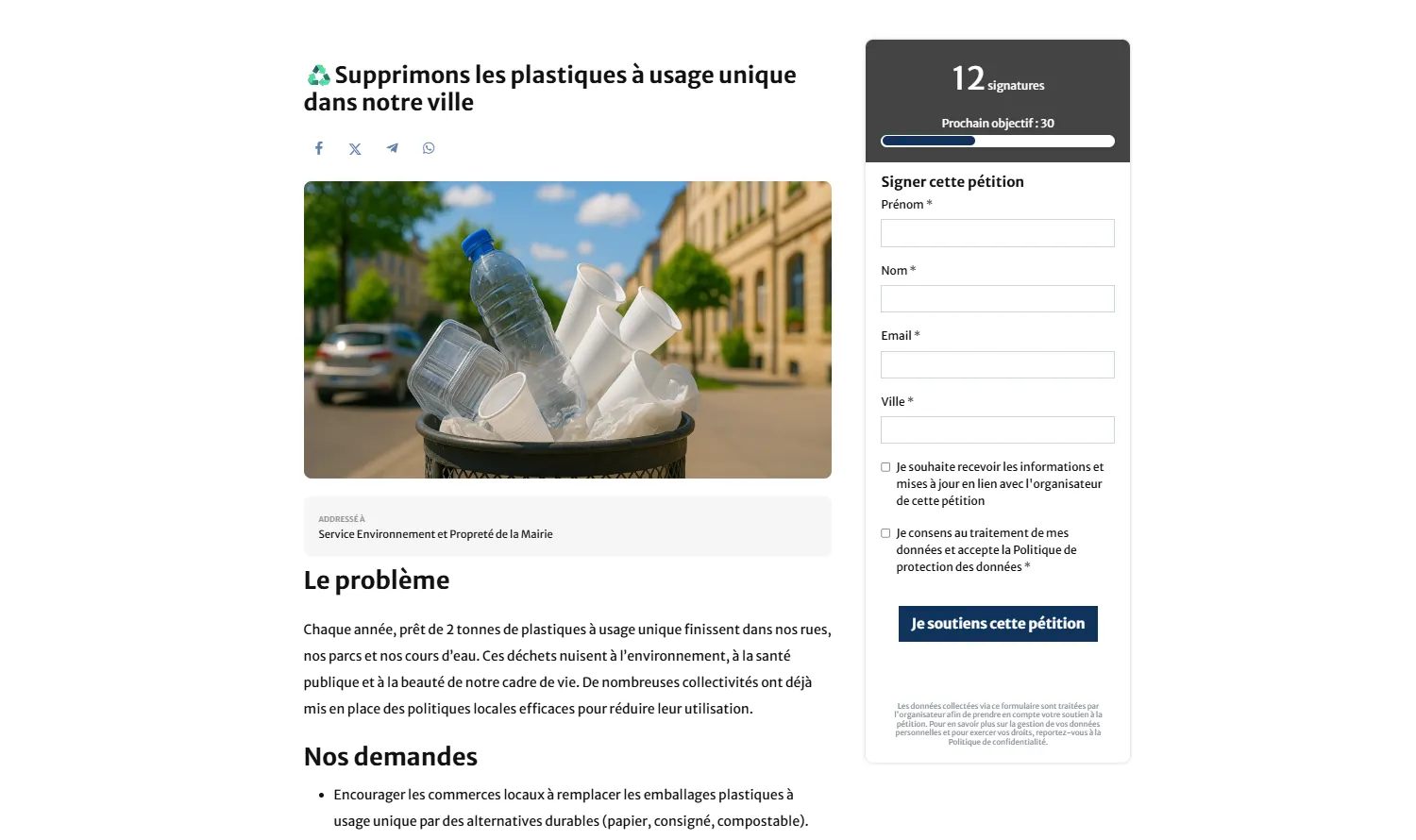 Lisez notre article de blog dédié pour en apprendre plus sur la façon de créer une pétition efficace.